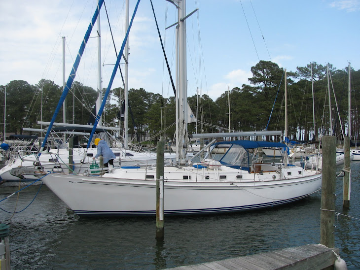 The adventure began in May of this year in Deltaville, Virginia. Our first trip was planned to move her to New Bern, North Carolina so we would be a little closer to our home in Tennessee and much closer to our kids and grandkids in Chapel Hill, NC. The first trip was more of an adventure than we had planned with multiple difficulties and we didn't quite make it before putting in for repairs in Oriental, NC. There is a long detailed account of this trip that is available upon request but a little lengthy for this blog. Many thanks to our very dear friend, Mike Degroot, who signed up as first mate without realizing the abuse we would shower upon him. Our last night of this first trip was spent at anchor in Adams Creek off the Neuse River watching the dolphins play, the sun set and toasting with a cool beverage. At least it ended well.